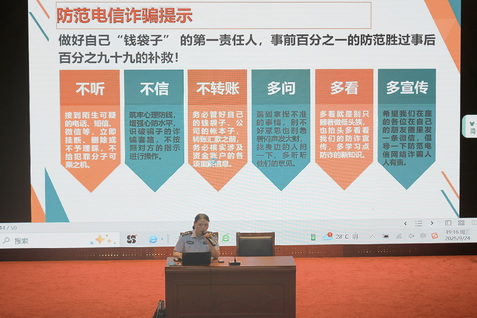 活動現(xiàn)場,屬地反詐警官結(jié)合轄區(qū)高校真實案例,重點講解了冒充電商客服退款、游戲賬號交易詐騙、刷單返利等近年來高校頻發(fā)的詐騙案例,向新生傳授了“三不三多”防護(hù)口訣,同時叮囑學(xué)生要做好自己“錢袋子” 的第一責(zé)任人,提醒新生“事前百分之一的防范勝過事后百分之九十九的補救”。
