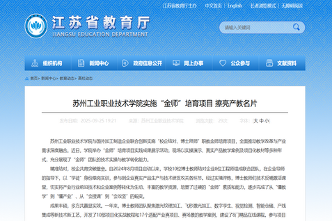 蘇州工業職業技術學院與國外加工制造企業聯合創新實施“校企結對、博士拜師”職教金師培育項目,全面推動教學改革與產業需求深度融合。近日,學院舉辦“金師”培育項目實踐成果展示活動,現場以實操演示、真實產品教學案例及項目化教材等多種形式,充分展現了“金師”團隊的技術實操與教學轉化能力。