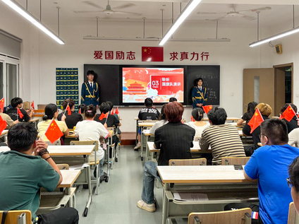 旗幟飄揚映初心,國防宣講明內涵。為深化學生對國家象征標識的認知與尊重,學院特邀國防軍事社團成員走進學生中間,開展專題宣講。宣講員結合歷史與現實,詳細闡釋了國旗、國徽的誕生歷程、深刻寓意及使用規范,激發了同學們的民族自豪感和尊崇之心。此外,學院還組織在校師生集中觀看天安門廣場的升旗儀式視頻,當雄壯的國歌奏響、鮮艷的五星紅旗迎風升起時,在場師生無不心潮澎湃,強烈的民族自豪感與愛國熱情油然而生。