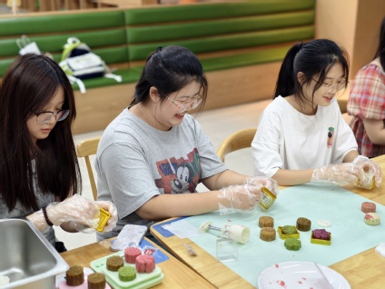活動(dòng)現(xiàn)場氣氛溫馨而熱烈。在月餅制作區(qū),同學(xué)們體驗(yàn)從傳統(tǒng)油皮制作起步,經(jīng)歷包餡、壓模、刷蛋液等多道精細(xì)工序,每一步都做得有模有樣,當(dāng)印有精美圖案的月餅從模具中脫出時(shí),現(xiàn)場充滿了驚喜與成就感。燈籠制作區(qū)也是歡聲笑語不斷。燈籠以玉兔攬?jiān)聢D紙為樣式,大家靈巧地拼接、粘貼,一只只栩栩如生、憨態(tài)可掬的“中秋玉兔”燈籠陸續(xù)亮起,溫暖的光暈映照著張張笑臉,洋溢著濃濃的節(jié)日氣息。大家在一捏一揉、一折一剪中,增進(jìn)了彼此的情誼,共同度過了一個(gè)有意義、有溫度的文化中秋。