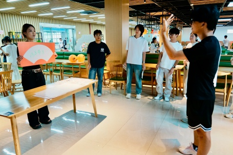 活動現場,趣味游戲環節精彩紛呈。“月圓夜·你劃我猜”區域,選手們兩兩一組,配合默契,滑稽動作與精彩互動引得陣陣掌聲歡笑。“趣味猜燈謎”區域,五彩燈謎隨風輕擺,同學們或凝神思考,或熱烈討論,在思維碰撞中感受古典文字游戲魅力。“攬月入圈”游戲區域,同學們手持圓環,輕松投擲,仿佛回到童年,盡情享受傳統游藝快樂。各游戲點前都排起長隊,氣氛熱烈有序,展現出同學們蓬勃朝氣與團隊精神。