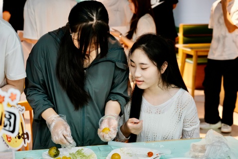 活動在冰皮月餅制作區溫馨啟幕。工作人員耐心講解示范,同學們摩拳擦掌、躍躍欲試。揉捏餅皮時,大家全神貫注,力求軟硬適中;包裹餡料時,小心翼翼;壓模成型時,屏氣凝神。每一個步驟,同學們都一絲不茍,仿佛雕琢珍貴藝術品。大家制作的不僅是月餅,更是對傳統文化的深情傳承與弘揚。