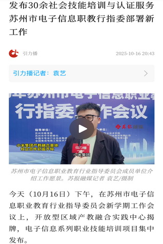 今天(10月16日)下午,在蘇州市電子信息職業教育行業指導委員會新學期工作會議上,開放型區域產教融合實踐中心揭牌,電子信息系列職業技能培訓項目集中發布。