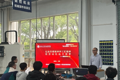 為大力弘揚勞模精神、勞動精神、工匠精神,10月20日下午,校勞模創新工作室揭牌儀式暨勞模講座活動在天巧樓舉行。校工會主席安婕,精密制造學院黨總支書記周瑾、黨總支副書記汪寧、工會主席沈小強,江蘇省五一勞動獎章獲得者、蘇州市勞動模范王勇教授,江蘇省技術能手、蘇州市勞動模范殷銘教授及精密制造學院25級學生代表參加此次活動。活動由孫兆藝老師主持。