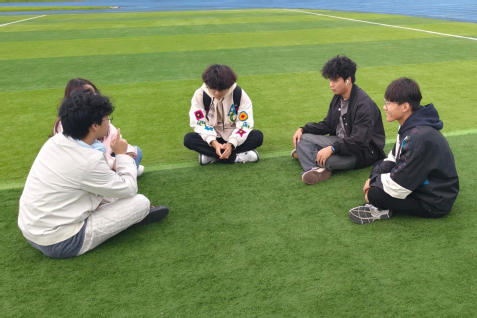 活動當天,秋高氣爽,陽光和煦。參與活動的各小組在“一站式”學生社區廣場集合,他們拉起主題橫幅,以一張充滿活力的集體照為這場心靈之旅拉開了序幕。在輕快的背景音樂中,同學們以多人小組為單位,按照精心規劃的路線出發。路線串聯起校園內的多個標志性地點,每個站點都設置了獨特的心理互動任務:圖書館前的自拍合影,標志著行程開啟;來鷺湖畔觸摸自然,靜心感受萬物生機;“我在乎你”石頭處定格瞬間,傳遞同伴間的溫暖情誼;最后齊聚操場看臺,暢聊“今日最快樂的小事”,在歡聲笑語中傳遞積極情緒,加深彼此了解。整場活動中,各小組自由掌控步行節奏,在秋日校園的美景中漫步暢談。最終在完成全部四個站點的打卡任務后,活動圓滿結束。