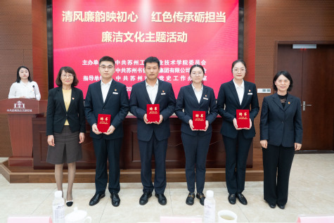活動(dòng)現(xiàn)場(chǎng),校企雙方紀(jì)委書(shū)記共同為“廉潔文化特聘講師”頒發(fā)聘書(shū),中共蘇州獨(dú)立支部舊址的4位宣教老師將作為“廉潔文化特聘講師”,充實(shí)廉潔文化宣傳教育師資力量,構(gòu)建校企協(xié)同、三方聯(lián)動(dòng)的廉潔教育新模式。中共蘇州獨(dú)立支部舊址宣教老師劉雨晴帶來(lái)微黨課《不愿跪著生 情愿立著死——葉天底的青春誓言》,從一場(chǎng)風(fēng)潮、三個(gè)組織、兩封家書(shū)等三個(gè)方面講述了葉天底的革命堅(jiān)守。我校馬克思主義學(xué)院教師劉峰以《新時(shí)代的徙木立信之舉——深入學(xué)習(xí)貫徹中央八項(xiàng)規(guī)定精神》為主題,系統(tǒng)闡釋了中央八項(xiàng)規(guī)定精神的歷史淵源和時(shí)代價(jià)值。在“廉潔自律,永葆本色”主題分享中,集團(tuán)紀(jì)檢監(jiān)察室職員胡丁昊和學(xué)校經(jīng)濟(jì)管理學(xué)院黨總支書(shū)記梁青春從廉政防控、基層黨建、廉潔教育等角度,交流廉潔文化與業(yè)務(wù)融合的實(shí)踐經(jīng)驗(yàn)。