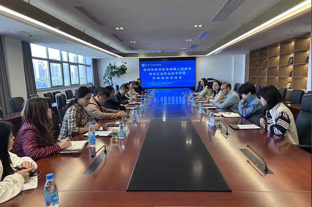 座談中,梁青春對光福鎮的來訪表示熱烈歡迎,并對光福鎮長期以來與學院開展的交流合作支持表示感謝。唐德淼介紹了經濟管理學院專業建設、人才培養、產教融合、學生創業項目孵化等情況。電子商務專業帶頭人肖坤梅介紹了電子商務專業直播實訓基地建設、新媒體營銷產業學院發展情況。雙方圍繞手工藝品、農產品新媒體營銷及創新創業項目,以及如何促進鄉村振興等方面進行深入探討和交流。宋陽對我校的熱情接待表示感謝,他表示光福鎮在手工藝品、農產品領域具有獨特優勢,期待與學校在人才培養、產教融合、學生實踐等方面開展交流合作,實現協同共贏。