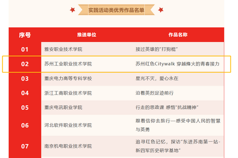 本次活動,共征集短視頻作品307部,最終推選出個人講述類優(yōu)秀作品24部、實踐活動類優(yōu)秀作品13部、藝術(shù)展示類優(yōu)秀作品21部。我校報送視頻內(nèi)容以蘇州地區(qū)豐富的紅色資源為載體,圍繞蘇州抗戰(zhàn)歷史,精心策劃并開展了一場紅色Citywalk之旅。師生團隊沿著已消失的蘇嘉鐵路遺跡、以愛國運動命名的五卅路、承載革命記憶的“救國里”的小巷,深入探尋蘇州抗戰(zhàn)中鐵路、街巷背后的多維戰(zhàn)場故事。視頻通過“城市漫游+青春敘事”的創(chuàng)新表達形式,生動展現(xiàn)了抗戰(zhàn)時期蘇州軍民同仇敵愾、英勇抗爭的歷史畫卷,有效激勵新時代青年學(xué)子堅定樹立技能報國的信念。