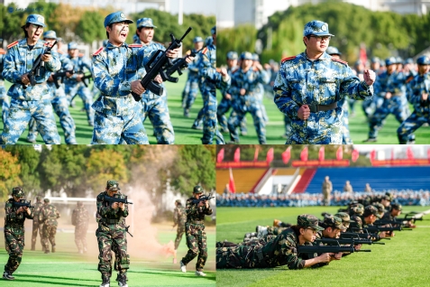 馬延文宣布軍事技能訓練成果匯報暨總結表彰大會正式開始。莊嚴的升旗儀式后,所有參訓學生精神飽滿、斗志昂揚,先后進行了分列式匯演和軍事技能訓練成果匯報展示。八個營的分列式隊伍步履鏗鏘、軍容嚴整、口號嘹亮、意氣風發,經過軍訓洗禮的學生既透出軍人堅毅果敢的氣質,又展現出了青年學子熱情昂揚的精神風貌;軍體拳、刺殺操、匕首操、戰術表演等,精彩紛呈、掌聲不斷,展示出青年學子青春飛揚、蓬勃向上的英姿風采。