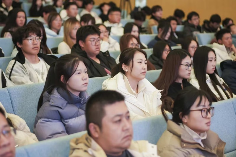 活動在《悅動臨沂》《這里是蘭陵》形象宣傳片及悠揚的《沂蒙山小調》中拉開序幕。隨后,陳藝代表學校致歡迎辭,他表示,學校將積極推動沂蒙精神融入“大思政”育人體系,引導師生深刻把握其時代內涵與實踐價值,筑牢信仰之基,汲取奮進力量。胡慕翔在致辭中深刻闡釋了沂蒙精神的歷史脈絡與當代價值,強調了在新征程上傳承弘揚沂蒙精神的重大意義。
